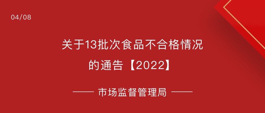 市場監(jiān)管總局關(guān)于13批次食品不合格情況的通告【2022】……