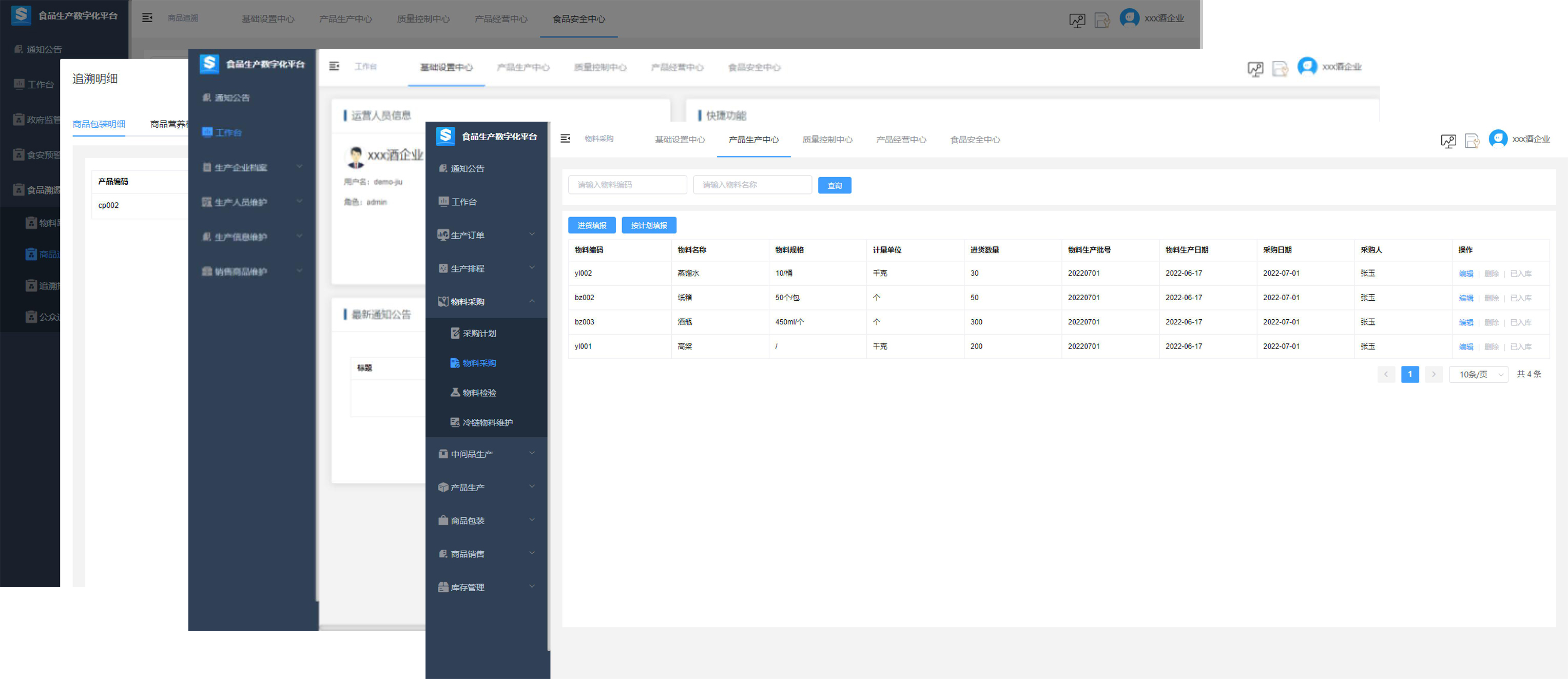 平臺包含基礎(chǔ)設(shè)置、產(chǎn)品生產(chǎn)、質(zhì)量控制、產(chǎn)品經(jīng)營、食品安全、生產(chǎn)數(shù)據(jù)等6個中心,上百個功能,還有防偽防竄貨、門店管理、多級分銷、消費者信息、物料采集平臺等增值服務(wù),幫助企業(yè)完成數(shù)字化轉(zhuǎn)型。